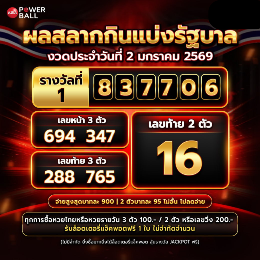 สำหรับ Asia Powerball และ หวยรัฐบาลไทย เราล็อกอัตราการจ่ายสูงสุดแบบคงที่ ไม่ลดอัตราการจ่ายลง แม้ใกล้ถึงเวลาออกผลรางวัล ผู้ซื้อรางวัลสามารถเริ่มต้นซื้อรางวัลได้ตั้งแต่ เลข 1หลักขึ้นไป ตัวอย่าง